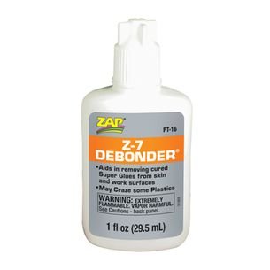 Zap Z-7 Debonder (29.5ml) Der Zap Z-7 Debonder ist ein Lösemittel für Sekundenkleber aller gängigen Hersteller. Er weicht den Sekundenkleber auf, so kann er dann